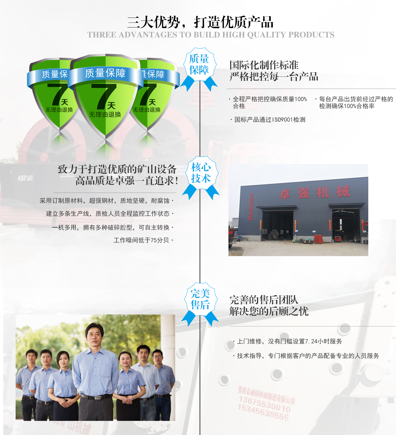 繁昌縣卓強(qiáng)機(jī)械制造有限公司是一家以生產(chǎn)品質(zhì)礦山設(shè)備為主,集設(shè)計(jì)、生產(chǎn)、銷售、售后為一體的廠家。公司位于安徽省蕪湖市繁昌縣高速入口3千米處!主營(yíng)產(chǎn)品:洗砂設(shè)備、制砂設(shè)備、破碎設(shè)備、輸送設(shè)備、顎式破碎機(jī)及全套配件、圓錐機(jī)配件等全套礦山設(shè)備!卓強(qiáng)嚴(yán)格奉行用戶至上、用心服務(wù)的方針。以全天候24小時(shí),誠(chéng)心誠(chéng)意為用戶服務(wù)的經(jīng)營(yíng)理念,得到了廣大用戶的信賴和支持。熱烈歡迎廣大用戶前來(lái)我廠參觀考察!如有需要請(qǐng)及時(shí)與我們聯(lián)系!我們熱忱歡迎您的到來(lái)!